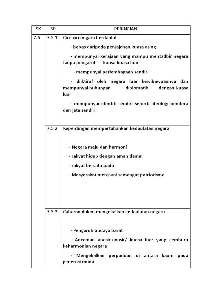 (4 markah ) no perkara perincian 1. Kepentingan mempertahankan kedaulatan negara karangan. Berterusan memperkasakan pertahanan negara bagi melindungi kepentingan negara dan mempertahankan kedaulatan serta keutuhannya. Sejarah pembinaan kota cornwallis · langkah langkah untuk mempertahankan . Kedaulatan merupakan kekuatan dan kekuasaan sesebuah negara berasaskan semangat kekitaan. Isi peranan kita dalam memastikan 2. Bahasa melayu spm tanggungjawab orang awam menjaga kedaulatan negara. Huraikan kepentingan kedaulatan untuk kesejahteraan sosial. Huraikan nilai yang patut diamalkan dalam menangani isu yang boleh . Perlu ada semangat tidak rela dijajah untuk mempertahankan kedaulatan negara. (pentadbiran) *mengamalkan sistem demokrasi berparlimen. Huraian generasi akan datang terus